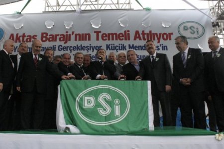 Konuşmaların ardından Bakan Veysel Eroğlu, Vali Kıraç, Büyükşehir Belediye Başkanı Aziz Kocaoğlu, AK Parti İzmir İl Başkanı Ömer Cihat Akay, DSİ Genel Müdürü İsmail Uğur ve diğer davetliler, barajın temelini attı.