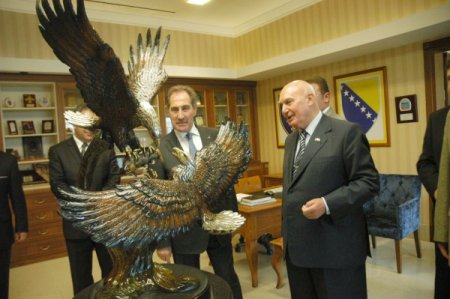 Bosna Hersek İzmir Fahri Konsolosu Baysak da, Günay'ın ziyaretinden memnuniyet duyduğunu ifade ederek, "Bosna Hersek'e 1995'te 100 aydınla yaptığımız ziyaretteydiniz. Orada bundan halk övgüyle bahsediyor." şeklinde konuştu. Anı defterini imzalayan Bakan Günay, daha sonra Baysak'ın koleksiyonundaki resim ve fotoğrafların yer aldığı sergiyi gezdi, Bosna'da çekilmiş fotoğraflarını inceledi. CİHAN