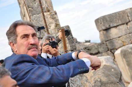Kazı başkanı Akdeniz Üniversitesi arkeologlarından Prof Dr. Taner Korkut eşliğinde bölgeyi gezen Bakan Ertuğrul Günay, daha sonra gazetecilerin sorularını cevapladı.
