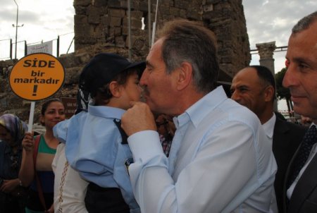 Günay, "Side, Türk turizminin en müstesna yeri. Side, kitle turizmi kadar kültür turizmi için de çok önemli bir antik şehir. Side'nin potansiyelinin artırılmasını istiyoruz. Side'nin, ülke turizminde yeri ayrı. Kitle ve kültür turizminin bir arada yapıldığı müstesna bir yer." dedi. Günay, daha sonra Side isimli bir çocuğu kucağına alarak sevdi.