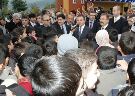 Büyük bir öğrenci kalabalığı tarafından okul girişinde karşılanan bakan Kılıç çocuklara ‘Sizlerle olmaktan büyük bir memnuniyet duyuyorum’ dedi.