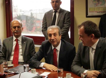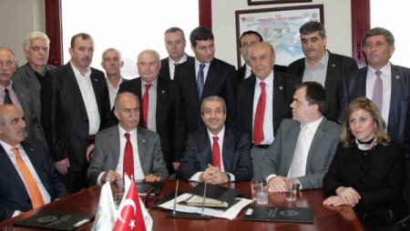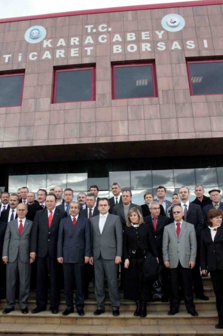 Gıda, Tarım ve Hayvancılık Bakanı Mehdi Eker’e ziyaretinde sanayiciler porselen bir sürahi ve el işlemesi Türk bayrağı tablosu hediye etti. Bakan Eker, Ticaret Borsası’na ait şeref defterini imzalarken, Karacabey Kaymakamı Dursun Balaban ise bir gazetecinin fotoğraf makinesini alarak, Bakan Eker’in fotoğraflarını çekti.