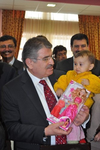 Van’ın Erciş ilçesinden gelen 57 depremzede ile yakından ilgilenen Şahin, çocuklara oyuncak dağıttı. Şahin, 1 yaşındaki Asya İş isimli kız çocuğu ile yakından ilgilendi.