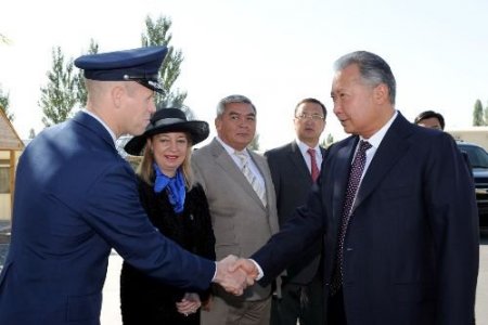 Törende Bakiyev ve ABD Büyükelçi Gfeller, 11 Eylül olaylarında hayatını kaybedenlerin anısına çelenk koydu. Bakiyev ve büyükelçi çelengi üssün eski ismini taşıyan dönemin itfaiye şefi Peter Ganci anıtına koydu. Bir dakikalık saygı duruşunun ardından kürsüye gelen Bakiyev, Kırgızistan olarak dünyadaki terör olaylarını kınadıklarını ifade etti. Kırgız lider, bunun en iyi örneğin toprakalrında 8 yıldır barınan ABD'nin askeri üssü olduğunu dile getirdi. ABD hükümeti ile varılan yeni anlaşmaya da açıklık getiren Bakiyev, Kırgızistan'ın Afganistan'daki durumu göz ardı edemeyeceğini ve bu yüzden üssün kalmasına razı olduklarını aktardı. Kırgız lider ancak, Afganistan'da durumun değişmediğine işaret ederek, koalisyon güçlerinin başarı sağlayamadıklarını vurguladı. Bakiyev, Afganistan'ın askeri operasyonlarla düzelmeyeceğinin altını çizdi. Kırgız lidere göre; ülkeye sosyal, ekonomik ve kültürel desteğin sağlanması azlım.