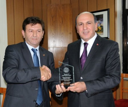 Daha sonra Özden, Başkan Ok\'a bir plaket takdim etti. CİHAN