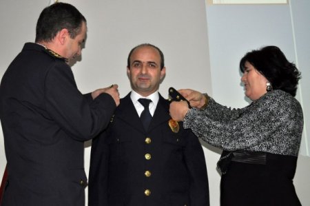 Daha sonra bir üst rütbeye terfi eden amir ve müdürlere yeni rütbelerini eşleri, Vali Vekili Dural, İl Emniyet Müdürü Aydın ve Emniyet Müdür yardımcıları taktı. CİHAN