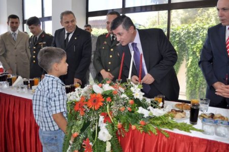 Bayramlaşma töreninde çocuklarla sohbet eden Vali Arslan, onlara bayram harçlığı verdi.