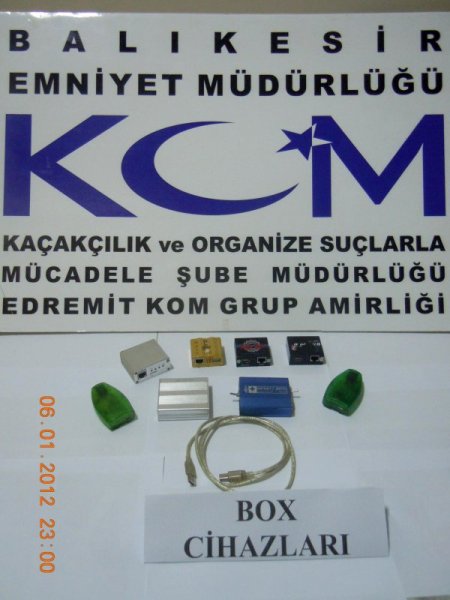 Bir ihbarı değerlendiren Edremit İlçe Emniyet Müdürlüğü KOM Şube Müdürlüğü ekipleri, yaptıkları aramada Y.Ç. isimli şüphelide 81 adet değişik markalarda ve yüksek modelli gümrük kaçağı cep telefonu ele geçirdi. Operasyon kapsamında Havran ilçesindeki bazı cep telefonu bayilerinde de arama yapan polis, H.D. ve M.Y.Y. isimli iki şüphelinin işyerinde 97 adet değişik markalarda kaçak cep telefonu, bir adet bilgisayar, sekiz adet box cihazı, bir adet ara kablo, iki adet box cihazına takılı SIM kart ele geçirdi. Gözaltına alınan üç zanlı hakkında, gümrük kaçağı cep telefonu satmak ve Elektronik Haberleşme Kanunu'na muhalefet suçlarından adli işlem yapıldı. Emniyet yetkilileri, Türkiye'de 500 bini aşkın IMEI numarası kopyalanarak değiştirilmiş cihaz bulunduğu, kayıtdışı ve çalıntı cep telefonu pazarının ülkeye maliyetinin oldukça fazla olduğunu bildirdi. CİHAN
