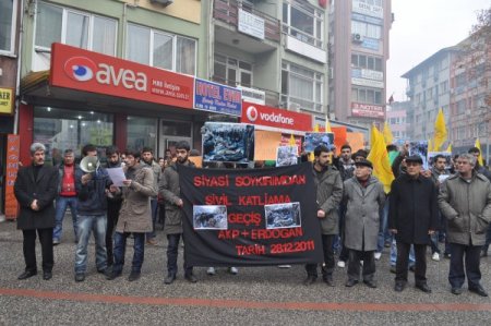 TÜİK binası önünde toplanan yaklaşık 40 kişilik grup, basın açıklaması öncesi hayatını kaybeden 35 vatandaş için 1 dakikalık saygı duruşunda bulundu. Daha sonra slogan atan grup, hayatını kaybeden vatandaşların fotoğraflarının bulunduğu dövizler taşıdı. BDP Balıkesir İl Başkanı Turan Cengiz'in de katıldığı basın açıklamasında sık sık hükümet ve Başbakan Recep Tayyip Erdoğan aleyhine sloganlar atıldı. Basın açıklamasında da "Görgü tanıklarının açıklamalarına göre yaşları 12 ile 20 arısnda değişen insanın askerler tarafından bilinçli bir şekilde önlerinin kesildiğini ve toplu halde bir alana yönlendirildiği daha sonra F16'lar tarafından bombalandığı söyleniyor. Ayrıca ölenlerin vücutlarında kurşun izlerinin bulunduğu da söyleniyor." denildi.