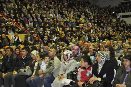 Kurtdereli Spor Salonu'nda koltukların ve sahanın dolması üzerine çok sayıda kişi programı ayakta seyretti, bazıları da dışarıda kaldı. İlahiyatçı Mevlüt Bulkaz tarafından sunulan programda sahneye çıkan 2005 Türkiye Kur'ân–ı Kerîm'i Güzel Okuma birincisi Fatih İmdat'ın tilaveti, dinleyenleri duygulandırdı. Tertip komitesi adına konuşan Balıkesir İl Müftüsü Turgut Açari, davetlerini kabul edip programa katılan herkese teşükkür etti. Kutlu Doğum Haftası dolayısıyla ilin bütün ilçe ve beldelerinde konferanslar, paneller ve anma merasimleri düzenlendiğini kaydeden Müftü Açari, "Rahmet Peygamberi, şöyle seslenmektedir: 'Siz yeryüzündekilere merhamet ederseniz, semadakiler de size merhamet eder.' Yeryüzünde kimler var? Önce kendimizden başlayacağız, sonra vazgeçemeyeceğimiz annelerimiz, babalarımız, çocuklarımız, kardeşlerimiz, arkabalarımız ve komşularımız var. Hastalar, yaşlılar, engelliler, bitkiler ve hayvanlara merhamet etmemimizi istiyor Allah Rasulü bizden. Daha sonra da, 'Birbirinizi Allah rızası için sevmiyorsanız, olgun bir müslüman sayılmazsınız.' buyuruyor." dedi. Açari, Balıkesir'in manevi dinamiklerinden Gönenli Mehmet Efendi'nin hayatından bazı bölümleri de anlattı.