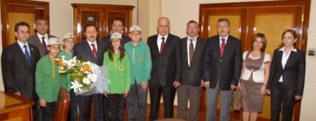 Çevre Haftası etkinlikleri kapsamında İl Çevre ve Orman Müdürü Rahmi Bayrak, Çevre Hizmetleri Birlik Müdürü Mehmet Durak ile Kültür ve Semt Evi izcileri, Vali Bankanlıoğlu’nu makamında ziyaret etti.