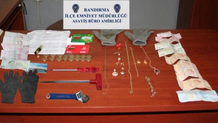 Bandırma İlçe Emniyet Müdürlüğü ekipleri, şehirdışından geldiği tespit edilen F.C. (25) ve T.Ç.'yi (22), 18 ikametten yapılan hırsızlıklarla ilgili olarak, çalıntı malzemelerle birlikte suçüstü yakaladı. Zanlılardan F.C.'nin üst aramasında 1 adet mavi renkli "kurbağacık" tabir edilen anahtar, 1 adet kırmızı saplı tornavida, 6 adet çeşitli kartvizitler, 1 çift gri renkli eldiven, 1 adet beyaz taşlı altın yüzük, 2 adet altın zincir kolye, 1 adet mavi beyaz taşlı altın yüzük, 1 adet beyaz taşlı altın pırlanta yüzük, 1 çift beyaz taşlı altın küpe, 1 adet çeyrek altın, 1 adet üzerinde Arapça yazılar bulunan altın zincir kolye, 1 adet halkalı altın künye, 1 adet ince halkalı altın künye, 1 çift beyaz taşlı altın küpe, 2 adet beyaz taşlı zincirsiz altın kolye başlığı, 1 çift kalp şekilli altın küpe ve 350 lira para bulundu. T.Ç.'nin üzerinde ise 1 adet kırmızı renkli tornavida, 1 çift siyah eldiven ve 290 lira para ele geçirildi. F.C.'nin bir, T.Ç.'nin üç suçtan kaydı olduğu ve arandığı öğrenildi. İki zanlının, çeşitli tarihlerde Bandırma'da 18 adresten, çelik kapı kilit göbeklerini kırmak suretiyle hırsızlık yaptığı görgü şahitleri, güvenlik kamerası görüntüleri ve üzerlerinde ele geçirilen malzemelerden tespit edildi. F.C. ve T.Ç.. çıkarıldıkları mahkemece tutuklanarak Bandırma M tipi Kapalı Cezaevi'ne gönderildi. CİHAN