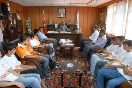 Adıyaman Sema-Der Okuma Salonu öğrencileri ve öğretmenleri, Okuma Salonu Koordinatörü Cuma Aslan ve Sema-Der Yönetim Kurulu Üyesi Ahmet Adıyaman, Belediye Başkanı M.Necip Büyükaslan’ı makamında ziyaret etti.