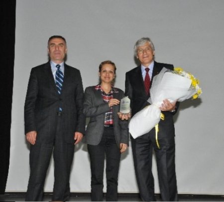 Konferansın ardından Samsun Meslek Yüksekokulu Müdürü Prof.Dr. Sevilhan Mennan tarafından konuşmacı Etiket Sanayicileri Derneği Başkanı Aydın Okay’a çiçek ve plaket takdim edildi.
