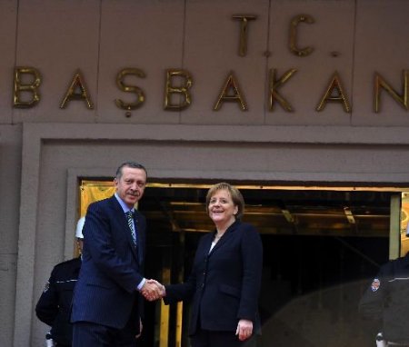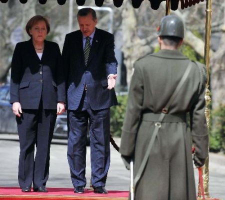 Almanya Başbakanı Angela Markel için Başbakanlık'ta resmi karşılama töreni düzenlendi. Törende, iki ülke milli marşları çalındı. Konuk Başbakan Merkel, tören kıtasını 'merhaba asker' diyerek selamladı.