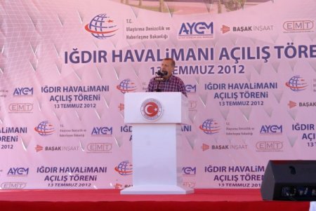 Başbakan Recep Tayip Erdoğan, açılış konuşmasında toplamda 56 milyon liralık yatırım yaparak Iğdır'ı 2 yılda modern bir havalimanına kavuşturduklarını söyledi. Erdoğan, "Iğdır'daki bu huzur ve kardeşlik ikliminin güçlenerek devam etmesini istiyoruz. Bunu başarmamız lazım. Iğdır'ın kültürüyle, sanatıyla kendisine, bölgesine ve ülkeye katkı sağlamaya devam etmesini istiyorum. Iğdır'a bakışımız hiçbir zaman oy üzerinden olmadı. Bu bölgenin kendi insanının dahi yatırım yapmadığını, gidip başka şehirlerde yerlerde tesisini kurduğunu kimse inkar edemez. Iğdır, gerek serhat şehri olması, doğal güzellikleri ile, tarihi ile bulunduğu bölgenin lokomotif şehri olmak için aslında her şeye sahip bir ilimiz. Iğdır, bırakınız diğer imkanları şu yanımızdaki efsaneler diyarı Ağrı Dağı'nı dahi, terör yüzünden yeterince değerlendiremedi, değerlendiremiyor. Ağrı Dağı başka bir yerde olsaydı, tek başına çevresindeki bütün şehirleri abad edecek bir kıymet haline dönüşürdü." dedi. Ünlendi barajı ve Iğdır içme suyu projesinde sona gelindiğini kaydeden Başbakan Erdoğan, inşasına bir yıl içinde başlayacaklarını kaydetti.