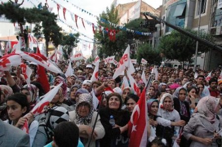 CHP'nin, bu anayasanın değişmesi gerektiğini söylediğini, raporlar hazırladığını ama "Gelin değiştirelim" denildiğinde de kapılarını kapattıklarını söyleyen Erdoğan, 1982'den beri MHP'nin bu anayasadan şikayet ettiğini ancak 'hadi görüşelim' dediklerinde çok nezaketsiz bir şekilde geri çevirdiğini aktardı. BDP parti kapatmaya kaştı çıkıyor ama anayasa oylamasından hem kendileri kaçıyor, hem de şimdi seçmen tabanını halk oylamasından kaçırıyor. TBMM'de görüşmeler başladığında bize en ağır hakaretleri ettiler. Buradan soruyorum, anayasa paketinin içeriğine ilişkin bir tek eleştiri duydunuz mu? Hala bunlar çarşıda pazarda dolanıyor. Ah benim Gakkoşlarım ah. Bunların bugüne kadar bu millete bir hayırları dokunmadıkı bugün dokunsun. Bu anayasa değişikliği bir AK Parti projesi değildir. Bu bir Türkiye millet projesidir. Yıllarca 12 Eylül Anayasa'sından şikayet ettiler, hep dile getirdiler hadi gelin deyince kaçtıklarını görüyoruz. Tek yürek halinde diyoruz ki, 'Sevdamız millet kararımız evet' Gakkoş bu işte. Mesele bu. Peki bunlar ne diyorlar, AK Parti bu değişikliği kendisi için yapıyor."