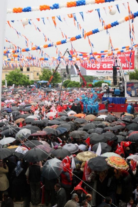12 Haziran seçimlerine ilişkin il mitinglerine Konya'nın ardından Samsun'la devam eden Başbakan Erdoğan, sağanak yağmura rağmen Samsunlulardan büyük ilgi gördü. Yağmura aldırış etmeyen Samsunlular, mitinge saatler kala Cumhuriyet Meydanı'nı doldurdu. Yoğun güvenlik önlemleri altında alana alınan vatandaşlar, kendilerini yağmurdan parti bayraklarıyla korumaya çalıştı. Aşırı kalabalıkta fenalaşan vatandaşlara sağlık ekipleri müdahale ederken, görevli polislerin vatandaşlara nazikçe yardımcı olması dikkat çekti. Eşi Emine Erdoğan ile birlikte meydana giriş yapan Başbakan Erdoğan, Samsunlulara hitap etti.