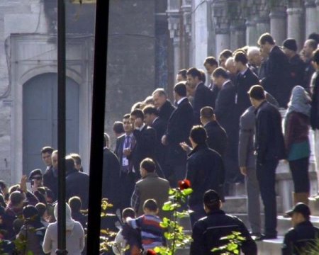 Başbakan Erdoğan’a, bayram namazında Devlet Bakanı Hayati Yazıcı, İstanbul Valisi Hüseyin Avni Mutlu, İstanbul Büyükşehir Belediye Başkanı Kadir Topbaş eşlik etti. Cami bahçesinde toplanan çok sayıda vatandaş, camiden çıkan Erdoğan’a sevgi gösterilerinde bulundu. Erdoğan da kendisine alkışlayan vatandaşlara el sallayarak karşılık verdi.