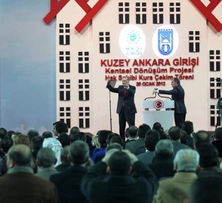 Ankara Arena Spor Salonu'nda Kuzey Ankara Kentsel Dönüşüm Projesi Konut Kura Çekim Töreni’nde konuşan Erdoğan, gündemdeki konulara değindi. Ankara’nın ağır köhnemiş havasını değiştirdiklareni söyleyen Erdoğan, Ankarayı bu milletin bu coğrafyanın umudu haline getirdiklerini söyledi. Ankara’nın derinlerine, kılcallarına işlemiş olan derin ilişkileri çeteleri ortaya çıkardıklarını kaydeden Erdoğan, Hrant Dink davasına şu ifadelerle temas etti: "Ankara’nın yüreği Uludere ile birliktedir. Ankara artık bir miyop değil. Ankara artık Şam’ı, Kudüs’ü göremeyen hipermetrop değil. Ne 34 vatandaşın ne de İstanbul’da sokakta hunharca öldürülen Hrant Dink davası Ankara’nın derin dehlizlerinde kaybolmaz kaybolamaz. Türkiye artık eski Türkiye değil. Hiç kimsenin yaptığı yanına kar kalmaz. Hiçbir provakasyon gizli kalamaz. 6 farklı dilde aynı ezgiyle duyguyla söylenen Sarı Gelin Türküsü’nü Şişli’de sıkılan bir kurşun susturamaz. Hükümet olarak bugüne kadar sorumluluğumuz neyse hakkıyla yerine getirme gayretinde olduk. Bundan sonra da aynı gayretle devam edeceğiz. 32 saatte yakaladık. Sağda solda köşelerinde yazı yazanlar hükümetimize konuşurken önce kendilerine çeki düzen versinler. Bu bir faili meçhul olmamıştır anında üzerine gidilmiş."