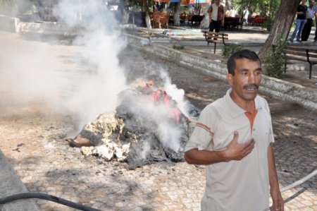 Yanan eşyaların alevleri yükselmeye başladı. Olay yerine gelen itfaiye ekipleri yangını söndürdü.