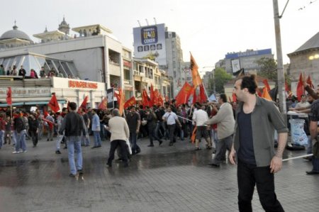 Hopa’da Başbakan Erdoğan’ı protesto eden gruba polisin müdahalesi sırasında heyecanlanarak kalp krizinden ölen emekli öğretmen Metin Lokumcu için aralarında ÖDP, Halk Evleri, Gençlik Muhalefeti, Öğrenci Kolektifleri, TKP’lilerden oluşan yaklaşık bin kişilik grup Galatasaray Meydanı’nda toplandı. ‘Metin Lokumcu’nun katili AKP’nin polisi’, ‘Hopa faşizme mezar olacak’, Halka kalkan faşist eller kırılsın’, ‘Her yer Hopa her yer direniş’ şeklinde slogan atan grup ‘AKP’nin ileri demokrasisi Hopa’da ölüm saçtı’ yazılı pankart taşıdı.