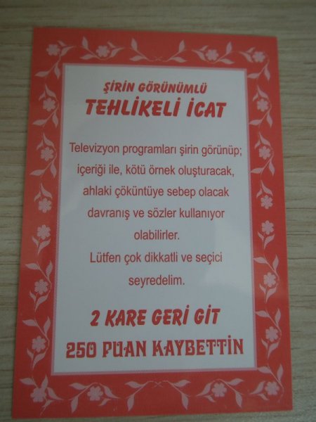 Aileyi televizyon, bilgisayar gibi teknolojik aletlerin bölünmüşlüğünden kurtarmayı amaçlayan oyun, çocuklara olumlu davranışlar kazandırıp pekiştirmeyi hedefliyor. Genç nüfusun önemine vurgu yapılan oyunda, davranış kartlarından 'üç çocuk'u çeken oyuncu 250 puan kazanıyor. Dünyanın dört bir yanında hizmet veren eğitim gönüllülerinin de yer aldığı oyunda geçen yıl Gazze'ye insani yardım götürürken İsrail'in saldırısı sonucu şehit düşen 9 Türk de rahmetle anılıyor.