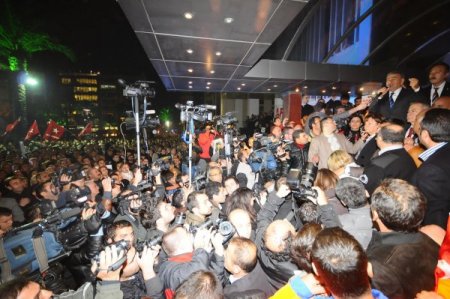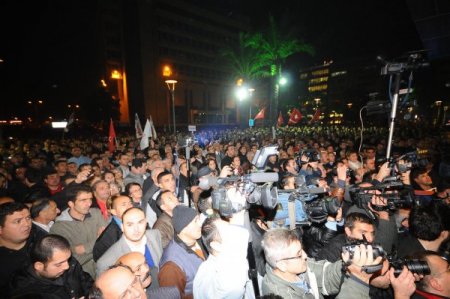 EXPO sunumu için bulunduğu Paris’ten operasyonu duyar duymaz ilk uçakla İzmir’e gelen İzmir Büyükşehir Belediye Başkanı Aziz Kocaoğlu, belediye önünde toplanan partili ve sendikalı işçilerine seslendi. Belediye başkanlığı görevi boyunca hiç kimsenin kendisini yolsuzluk yapan, ihaleye fesat karıştıran, menfaat sağlayan bir başkan olarak düşünmediğini söyleyen Kocaoğlu, altı ay 22 gündür süren soruşturma boyunca sustuklarını belirtti. Kocaoğlu, İzmir’i almak isteyenlerin kendisi için karalama kampanyası başlattıklarını ileri sürerek, “Dürüst değildir, onurlu değildir imajını tüm beyinlere sokmaya çalıştılar. Bu propaganda 2003 seçimlerinden önce başladı. Bizi kavgaya çekmeye çalıştılar. Amaçları tamamen politikti, biz namusumuzla, haysiyetimizle, şerefimizle, onurumuzla, biz sadece ve sadece İzmirli hemşehrilerimize hizmet etmeye çalışıyoruz. Başka bir amacımız yoktur.” dedi.