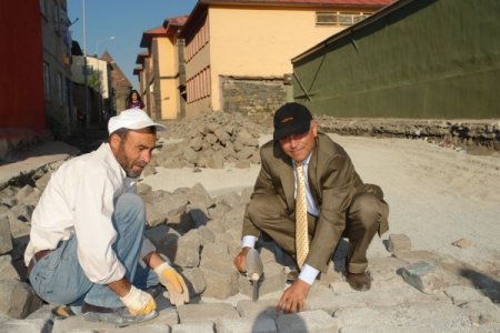 Erzurum Yakutiye Belediyesi, asfalt ve taş kaplama çalışmalarını sürdürüyor. Taşambarlar’ın da bulunduğu Mekteparkası Sokak’ta taş işçiliğini beğenen Başkan Ali Korkut, çekici eline alarak taş döşedi. Ustaların iyi işçilik çıkardıklarını söyleyen Korkut, "Taş ustası bulmak zor, iyi usta olursa döşediği taş da bir harika olur." dedi.