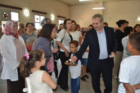 Adana Kozan Belediyesi'nin ev sahipliğinde Karacaoğlan Halk Kütüphanesi'nde gerçekleşen bayramlaşma programına katılan Belediye Başkanı Kazım Özgan, kendisiyle bayramlaşmak isteyen çocuklara bayram harçlığı dağıttı.