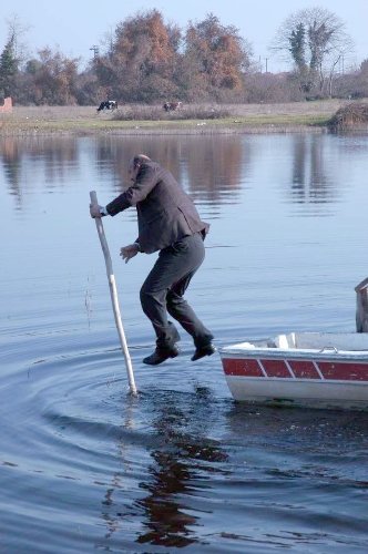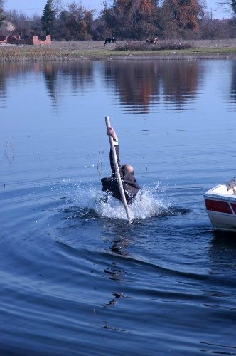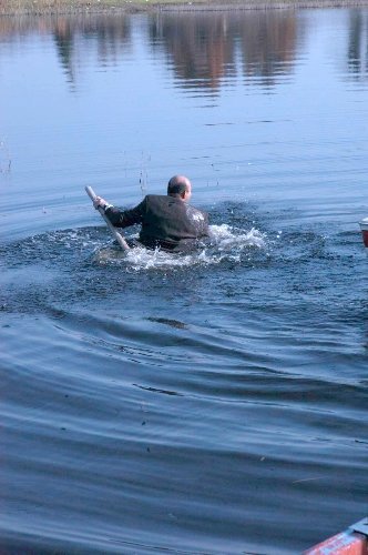 Mersin balığını çoğaltma çalışmaları kapsamında, Rusya'dan getirilen yumurtalardan elde edilen yavru balıkların dereye bırakılması sırasında belediye başkan yardımcısı kayıktan suya düştü. Başkan yardımcısının suya düşme anı fotoğraf karelerine yansıdı.