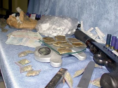 Bu kişilerle birlikte, 800 gram toz esrar, 281 adet kullanıma hazır paketlenmiş esrar, 434 kök hint keneviri, 3'ü kurusıkı 5 adet tabanca, 6 adet pompalı tüfek, 8 bin 400 Türk Lirası ve 333 ABD Doları ele geçirildi. Ele geçirilenler içinden 1949 Kırıkkale yapımı silahın üzerindeki 'TSK Personeline Mahsustur' yazısı dikkatlerden kaçmadı.