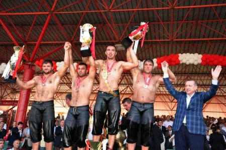 650. Tarihi Kırkpınar Yağlı Güreşleri Başpehlivanı olan Ali Gürbüz, kupasını Başbakan Recep Tayyip Erdoğan’ın elinden aldı.