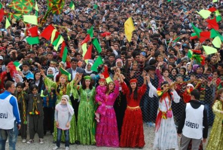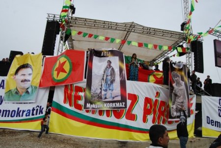 Batman'da Nevruz bayramı, Bağlar Mahallesi'nde bulunan miting alanında sıkı güvenlik önlemleri altında kutlandı. Kutlamaların sonunda platforma çıkan bir grup terör örgütü mensubu, terörist başı Abdullah Öcalan ve bazı PKK’lıların posterlerini açtı. Batman’daki Nevruz kutlamalarına BDP Batman milletvekilleri, BDP Grup Başkan vekilleri Ayla Akat Ata, Bengi Yıldız, Belediye Başkan Vekili Serhat Temel, BDP il yöneticileri ile Batman’daki birçok STK temsilcisi katıldı. Avrupa’dan gelen ve aralarında Avrupa Êzidiler Birliği Konfederasyonu heyet sorumlusu Leyla Özden, Avrupa Êzidiler Birliği Konfederasyonu Dış İlişkiler Sorumlusu Gewrê Yavsan, Celle Sol Parti Meclis Üyesi Andreas Hauptmeyer, Cele Belediyesi Entegrasyon Sorumlusu Ulrike Brinken, Celle Sol Parti Üyesi Jörg Lehr, SPD üyesi Birêz Lampe ve Verdi Sendikası Celle Sorumlusu Paul Stern'in bulunduğu heyet, kutlamaları, protokol için hazırlanan platformdan izledi. HALK KÜRTÇE ve TÜRKÇE MÜZİKLERLE COŞTU Sabahın erken saatlerinden itibaren alanı dolduran kalabalık, Kürtçe ve Türkçe müzikle coştu. Katılımcılar, rengarenk elbiselerle müzik eşliğinde halay çekti. Meral Tekçe, Halit Bilgiç ve Koma Azad alanda konser verdi. Nevruz kutlamasında konuşan BDP Grup Başkan Vekili ve Batman Milletvekili Bengi Yıldız, Nevruz ve 2011 seçimlerinin kendileri açısından önemli olduğuna dikkat çekti. Yıldız, şunları söyledi: “Halkımız meydanlarda kendi taleplerini haykırıyor. Bu cumhuriyet diktatörlüktür, demokratik cumhuriyet olmak zorundadır. Halkımız kendi kendini yönetecektir, bunun da Kürdistan’daki adı demokratik özerk Kürdistan’dır. Bu anayasa Kürtleri, Lazları, Çerkezleri farklı olan kimlikleri tanımıyor. 2011 seçimlerinden sonra yeni demokratik bir anayasa yapacağız. Bu nedenle halkımız iradesini parlamentoya güçlü bir şekilde yansıtmak zorundadır. Çünkü o parlamento yeni anayasayı yapacaktır.” Daha sonra söz alan BDP Grup Başkanvekili ve Batman Milletvekili Ayla Akat Ata, "Nevruz'u yeni gün olarak kutlayanların Nevruz'u kutlu olsun, bahar bayramı olarak kutlayanların Nevruz'u kutlu olsun. Kürt halkı gibi Nevruz'u direniş ve özgürlük bayramı olarak kutlayanların bayramı kutlu olsun.” dedi. PLATFORMDA ÖCALAN AFİŞLERİ Yüzleri kapalı bir grup, BDP Grup Başkan Vekili Ayla Akat Ata konuşma yaparken platforma çıkarak terörist başı Abdullah Öcalan ve bazı PKK’lıların posterlerini açtı. PKK ve Abdullah Öcalan lehine atılan sloganlar eşliğinde yapılan konuşmaların ardından halkın demokratik çözüm çadırına yürümesi istendi. Bunun üzerine kalabalık, Diyarbakır Caddesi üzerinde kurulan çadıra kadar yürüdü. Yolda bazı AK Partili aday adaylarının posterlerinin bulunduğu billboardlar taşlandı. Çadıra kadar yürüyen grup, yapılan konuşmaların ardından dağıldı. CİHAN