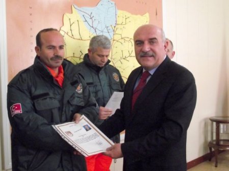 Bayburt Valisi Hasan İpek, Van’daki depremde arama kurtarma çalışmalarına katılan Bayburt Arama Kurtarma ekibine 'Başarı Belgesi' verdi.
