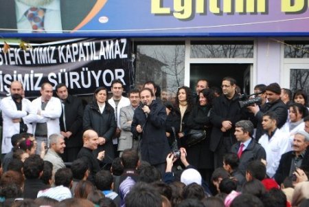 Basit bir protokol imzasının burada yüzlerce gencin eğitim hakkını engelleyecek bir karara çevrildiğini ileri süren Baydemir, “Eksik olan protokol mü, işte belediye başkanı işte vali hemen oturup imzalayalım. Vali yoğunsa milli eğitim müdürünü görevlendirsin. Belediye başkanı ile oturup imzalasın. Ama sen bu evi kapatıp bu çocukları bir yerlere yönlendirirsen bunu sana yedirmeyiz. Burada siyasetin sesi yok, çocuklarımıza fırsat eşitliği sağlayan bir hizmettir, buna destek istiyoruz. Diyarbakır’da da 4 belediyede, ilçe belediyeleri de bu hizmeti yürütüyor. Diyarbakır’a gider gitmez Diyarbakır Eğitim Destek Evi’ni kurdurtacağım.” diye konuştu.