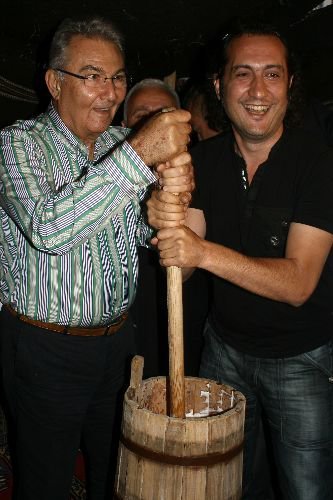 Yaklaşık 10 dakika süren yayık ayranı yayması sonrası Baykal, ilk bardağı sanatçı Kıraç'a içirdi.
