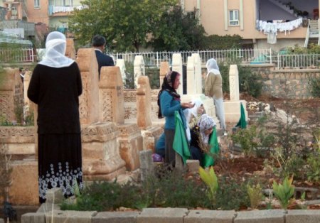 Kurban Bayramı arefesinde, Mardin’in Midyat ilçesinde bulunan vatandaşlar dua etmek için mezarlıklara akın etti.