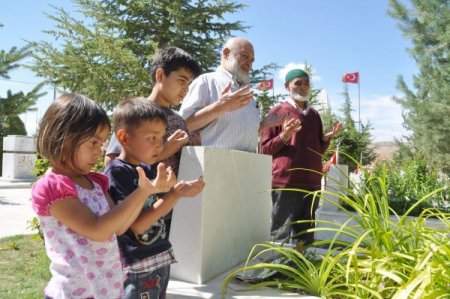 Yozgat'ta şehit aileleri ve vatandaşlar, bayram arefesinde şehitliklere akın etti. Yozgat Şehitliği'ne gelen aileler, şehitlerin mezarının başında Kuran okuyarak dualar etti.