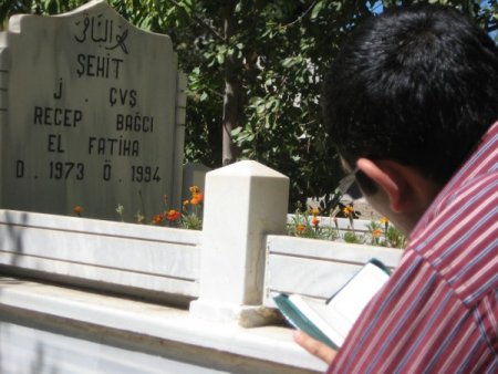 Erzurum'da Ramazan Bayramı arifesinde vatandaşlar mezarlık ve şehitlikleri ziyaret etti. Mezarlık ve şehitliklerde Kur'an ve dua sesleri yankılandı.