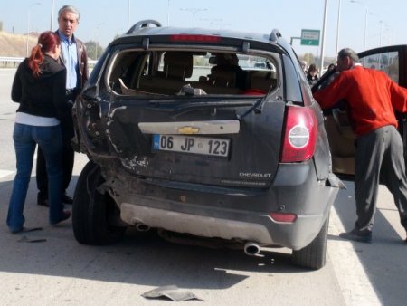Kurban Bayramı tatili dönüşünde trafik kazalarına her an yenileri ekleniyor. Ankara Çevre Yolu’nda meydana gelen kazada Turgut Vericioğlu yönetiminde 60 AY 535 plakalı araç, telefonla konuşmak için emniyet şeridinde bekleyen Yüksel Can Aydın’ın kullandığı 06 JP 123 plakalı jipe arkadan çarptı. Kazada bayram tatili dönüşü memleketi Tokat’a gittikleri öğrenilen Turgut Vericioğlu’nun kullandığı araçtaki 6 kişi yaralandı. Yaralılardan ikisinin durumunun ağır olduğu belirtildi.