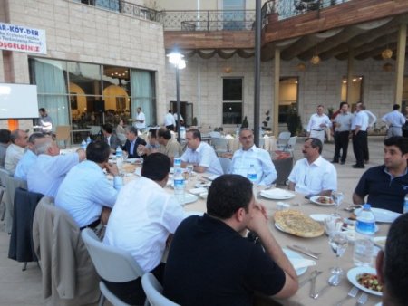 Erdoba Elegance Otel'de verilen iftar yemeğine Mardin vali yardımcıları Selim Palamut, Turan Erdoğan, Hüseyin Avcı, Mardin İl Müftüsü Dursun Ali Çoşkun, ilçe ve belde belediye başkanları ile il meclis üyeleri katıldı.