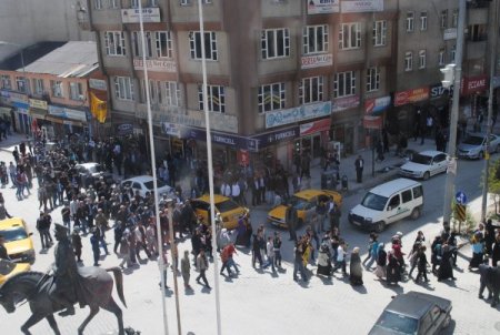 Bulvar Caddesi'nde bulunan BDP binası önünde toplanan kalabalık, ellerindeki pankartla, slogan atarak aynı cadde üzerinde yürümeye başladı. Kalabalık, Hakkari belediye binasını geçince durdu. Burada BDP Merkez ilçe Başkanı Fikret Erik, bir basın açıklaması okudu. Erik, "AK Parti hükümeti, devletinin yok edemediği Kürt özgürlük güçlerine karşı top yekün bir imha konseptini devreye koydu." dedi.
