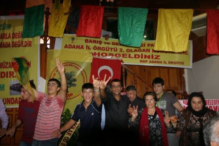 Barış ve Demokrasi Partisi Eşbaşkanı Selahattin Demirtaş, Adana İl Örgütü'nce yapılacak olağanüstü kongreye katılacak. Kongre öncesi salona Türk bayrağı asıldı. BDP'nin kongresi öncesi partililer sarı-kırmızı-yeşil bayraklarla donattıkları merkez Seyhan ilçesindeki salona Türk bayrağı da astı. Partililer, türküler eşliğinde halay da çekti.