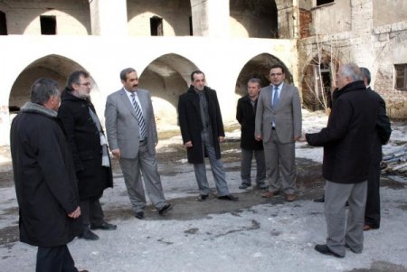 Sivas’ın önemli tarihi eserlerinden Behrampaşa Hanı'nın restorasyonu için proje bekleniyor. Sivas Belediyesi tarafından Vakıflar Bölge Müdürlüğü’nden 50 yıllığına kiralanan tarihi Behrampaşa Hanı’nın restorasyonu için teknik çalışmaların devam ettiği belirtildi. Sivas Belediye Başkanı Doğan Ürgüp, Sivas Kültür ve Tabiat Varlıklarını Koruma Kurulu Başkanı Mimar Ali Kamil Yalçın ve teknik heyet handa incelemede bulundu. Belediye Başkanı Ürgüp, tarihi eserin restorasyonuyla ilgili daha önce hazırlanan restorasyon projesindeki düzeltmeleri yerinde görmek için inceleme yaptıklarını söyledi. Gezi ve incelemenin ardından, bir açıklama yapan Ürgüp, altyapı çalışmaları tamamlanıp proje onaylandıktan sonra Behrampaşa Hanı'nda restorasyon çalışmalarının başlayacağını bildirdi. Onay sonra 2011 yılı içerisinde restorasyon çalışmalarının hız kazanacağını belirten Başkan Ürgüp, “İnşallah bu tarihi eserimizin restorasyonunu yaparak, tekrar şehrimize ve kültürümüze kazandıracağız.” diye konuştu. Sivas Kültür ve Tabiat Varlıklarını Koruma Kurulu Başkanı Mimar Ali Kamil Yalçın da tarihi eserin restorasyon projesiyle ilgili teknik çalışmaların devam ettiğini belirtti. Kurul Başkanı Yalçın, “Sayın Belediye Başkanı'mızın da söylediği gibi öncelikle sorunları belirlemek için raspa çalışması yapılıyor. Biz de raspa çalışmasını yerinde inceledik. Çalışmalar devam edecek. En kısa zamanda Behrampaşa Hanı onarılıp, hizmete açılacaktır.” dedi. Gezi ve incelemelere, Cumhuriyet Üniversitesi İnşaat Mühendisliği Bölümü öğretim elemanları ve İstanbul Teknik Üniversitesi Mimarlık Fakültesi doktora öğrencileri de eşlik etti.BEHRAMPAŞA HANI'NIN TARİHÇESİKepçeli mevkiinde tarihi Kurşunlu Hamamı ile yan yana bulunan tarihi han, Sağır Behrampaşa tarafından 1573 yılında yaptırıldı. Ortası açık bir avlunun çevresinde sıralanmış iki katlı 52 odadan meydana gelen han, kesme taş malzemeli olarak inşa edildi. İçerisinde bir de ahır kısmı bulunan hanın, güney yönünde dışa taşıntılı, sivri kemerli bir girişi ve bu girişin üzerinde üç dilimli kemere sahip iki penceresi bulunuyor. Pencerelerin sağ ve solunda aslan motifi işlenen han, halk arasında Taşhan olarak da biliniyor. CİHAN
