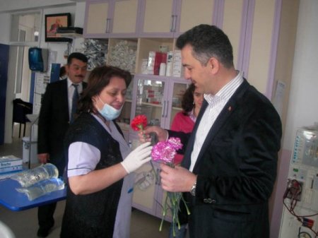 Giresun'un Görele Belediye Başkanı Ertuğrul Melikoğlu, 'Hemşireler Haftası' nedeniyle ilçede hizmet veren sağlık kuruluşlarını ziyaret edip, hemşirelere karanfil vererek kutladı.