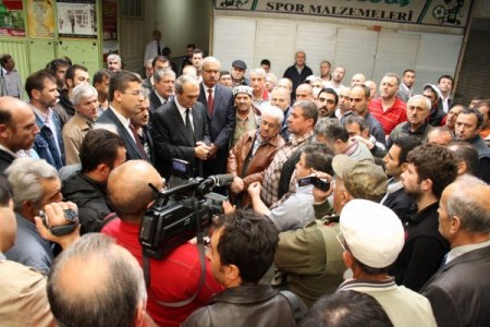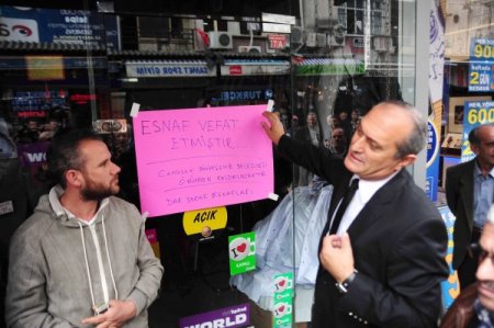 Uzun Çarşı'nın ardından Dar Sokak'ta dükkan kapatan esnafla görüşen Başkan Alişan, sokakta kapalı bulunan bir konfeksiyon mağazasının camına asılan 'Esnaf vefat etmiştir. Cenazesi Büyükşehir Belediyesi önünden kaldırılacaktır' yazılı bir pankartı 'cenazeyi kaldırmak bize düşer' diyerek söktü.