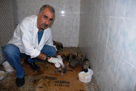 Adıyaman Altınşehir Mahallesi'nde, anneleri ölen ve henüz bir aylık olan 6 köpek yavrusuna, Adıyaman Belediyesi Veterinerlik Müdürlüğü biberonla bakıyor.