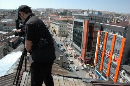 Sivas'ta belgesel çekimi için 8 katlı binanın çatısına çıkan kameraman, emniyet güçlerine hareketli saatler yaşattı. Şehrin tepeden genel görüntüsünü çekmek için Atatürk Caddesi'ndeki 8 katlı Vakıflar İşhanı'nın çatısına çıkan 22 yaşındaki genç kameraman Yasin Soyudoğru'yu gören vatandaşlar, durumu intihar girişimi sanarak polise bildirdi. Olay yerine gelen ekipler, çatıya çıktıklarında şehrin görüntülerini çeken kameraman Soyudoğru ile karşılaştı. Olayın yanlış anlaşılmadan kaynaklandığını anlayan polis ekipleri, bölgeden ayrıldı.