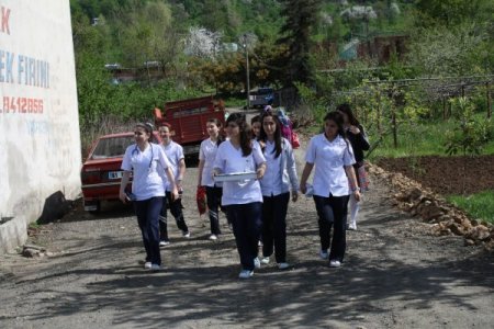 Trabzon’un Vakfıkebir ilçesinde Ömer Nakkaş Anadolu Sağlık Meslek Lisesi Kültür-Edebiyat Kulübü öğrencileri, ilçeye bağlı Kirazlık Mahallesi'nde sokak, sokak dolaşarak vatandaşların şeker ve tansiyonlarını ölçtü.